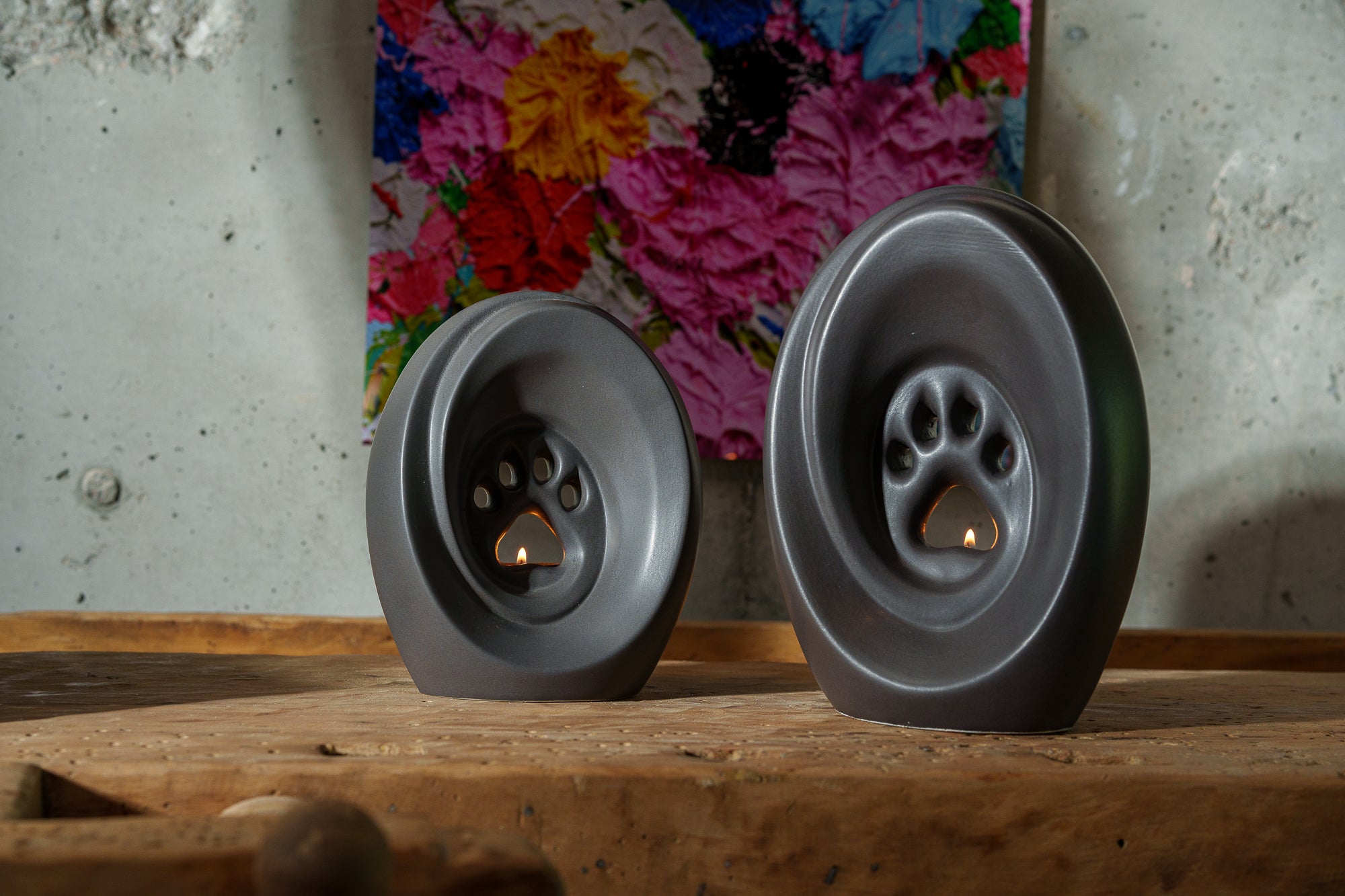 Une urne pour animaux belle et durable, conçue exclusivement pour les grands chiens tels que le Saint-Bernard, le Mastiff anglais, le Lévrier irlandais, le Leonberg et le Dogue allemand. Façonnée à la main en Europe à partir de céramique haut de gamme et cuite deux fois à 1200°C, elle intègre un support pour bougie chauffe-plat, créant un mémorial chaleureux et personnel dans votre maison ou votre jardin.